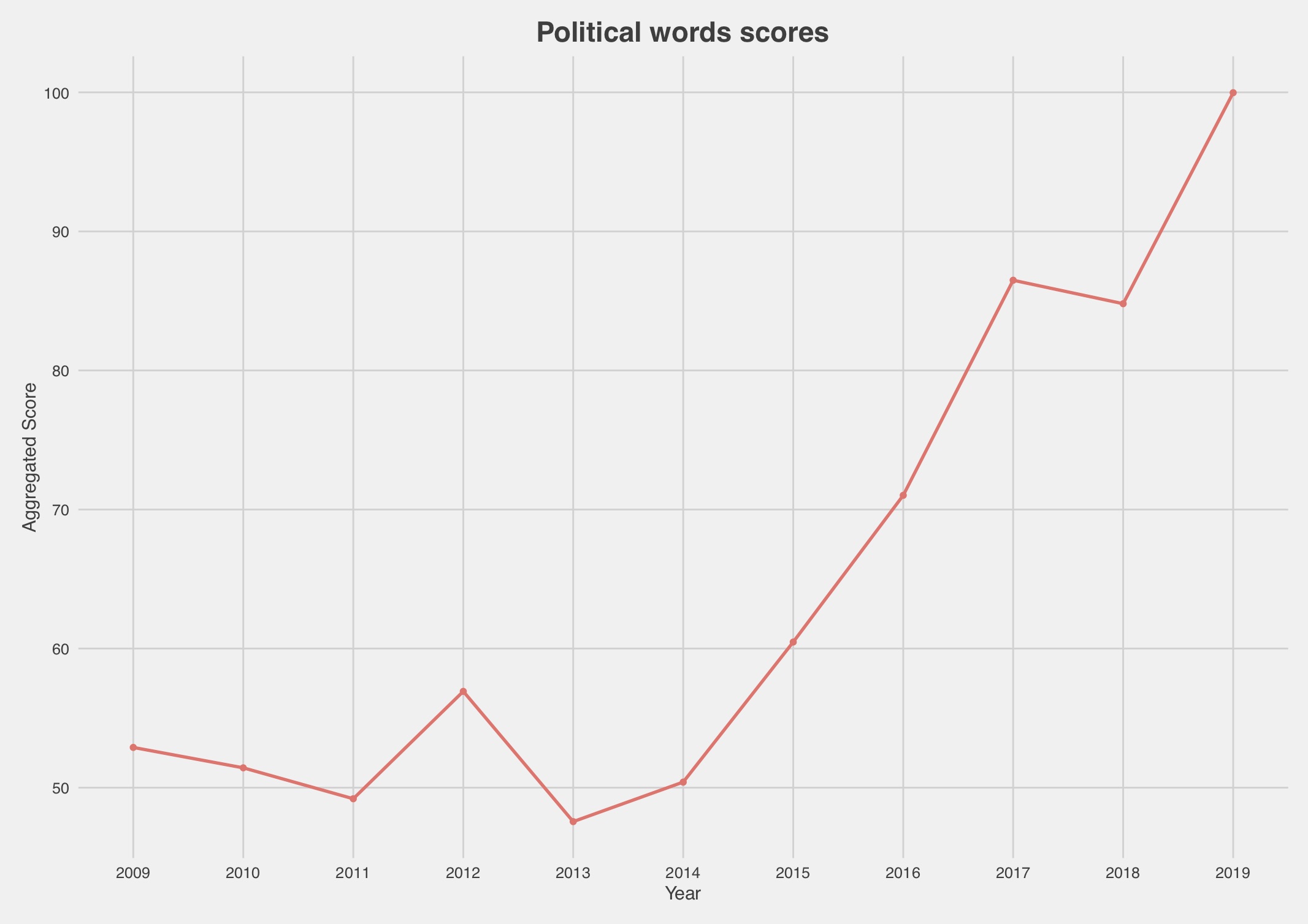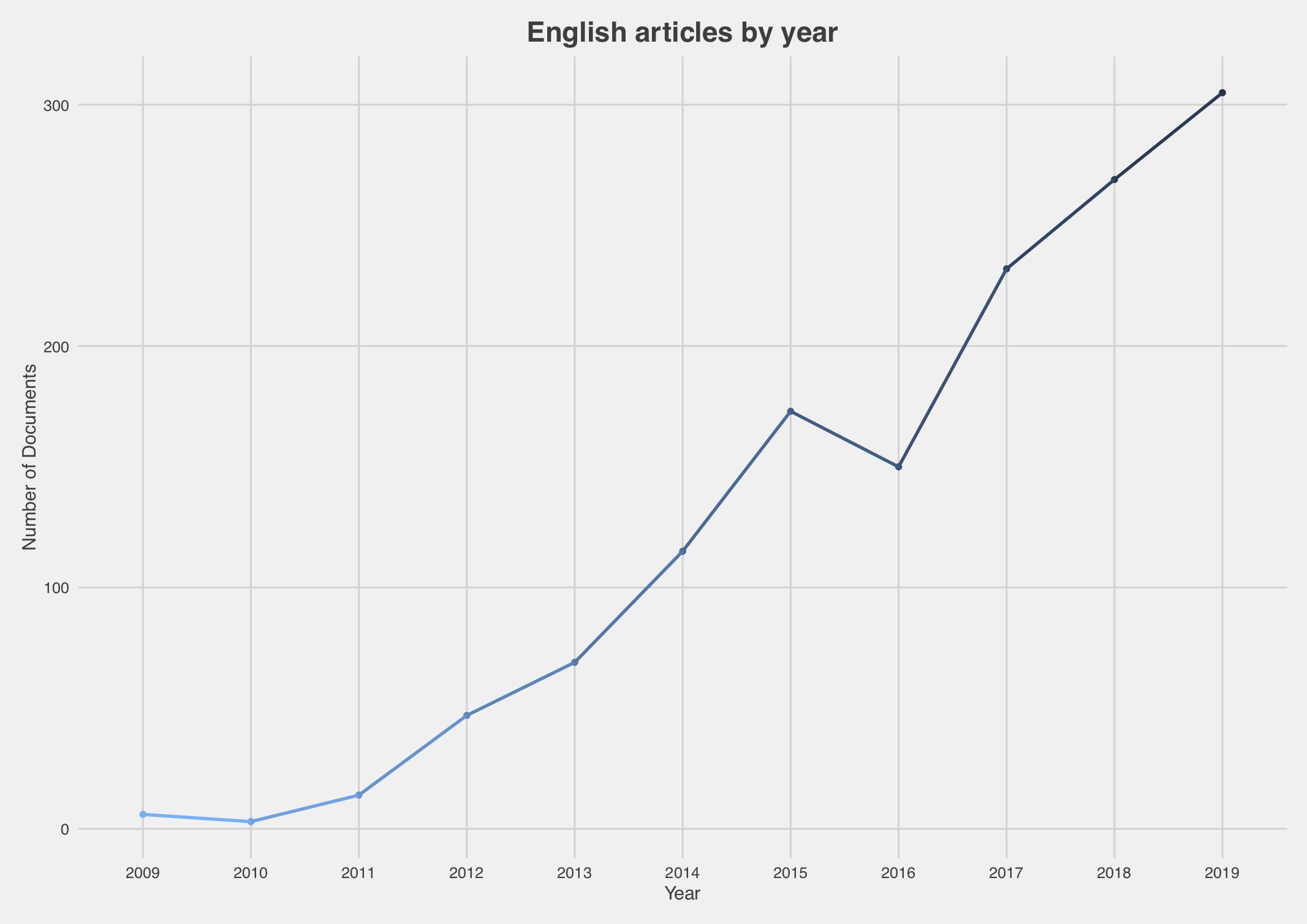 The repeated shocks and looming threats now confronting European societies together with the supranational institutions they erected in the wake of the Second World War may be changing this. Much of what could be taken for granted when politics was dull and predictable – whether it is the authority of constitutional tribunals, the independence of the judiciary or support of democratic-liberal values – can no longer be assumed. Constitutional law, therefore, can no longer be treated as if it were independent and insulated from politics. It never was. But the shockwaves that have rippled through the European political order have exposed the artificial character of the law vs politics distinction, forcing constitutional law scholars to adapt. Contributions to the Verfassungsblog provide evidence for this evolution. The Verfassungsblog publishes posts on constitutional developments in Germany and Europe (and occasionally beyond) since 2009. Initially most posts were in German, but English language contributions have increased considerably over time to more than 300 in 2019 (see Chart). To check our hypothesis that contributors have been paying increasing attention to politics, elections, parties and the electoral cycle, we used computer scripts to harvest the texts of all the posts that have appeared on the blog since 2009 and up to 2019.