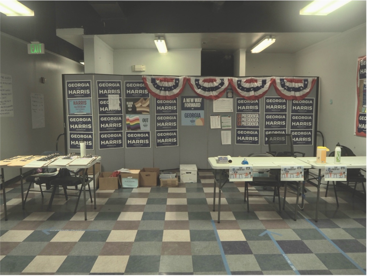 While the mood at the headquarters was exuberant, our initial attempts to speak to people were met with a sense of suspicion. Years of relentless Republican efforts to intimidate election officials and volunteers, to infiltrate and hijack these community spaces and abuse the trust and openness that characterizes them has left many justifiably cautious and worried about their safety. After one of the volunteers agreed to speak to us, they guided us through the bustling hallways and rooms full of people making calls, collecting data and distributing food. Far from just being an operational headquarters for a candidate’s campaign, it was clearly a place where people came to meet, connect and build community. People looked out for each other, reminded us to hydrate and to grab a snack.