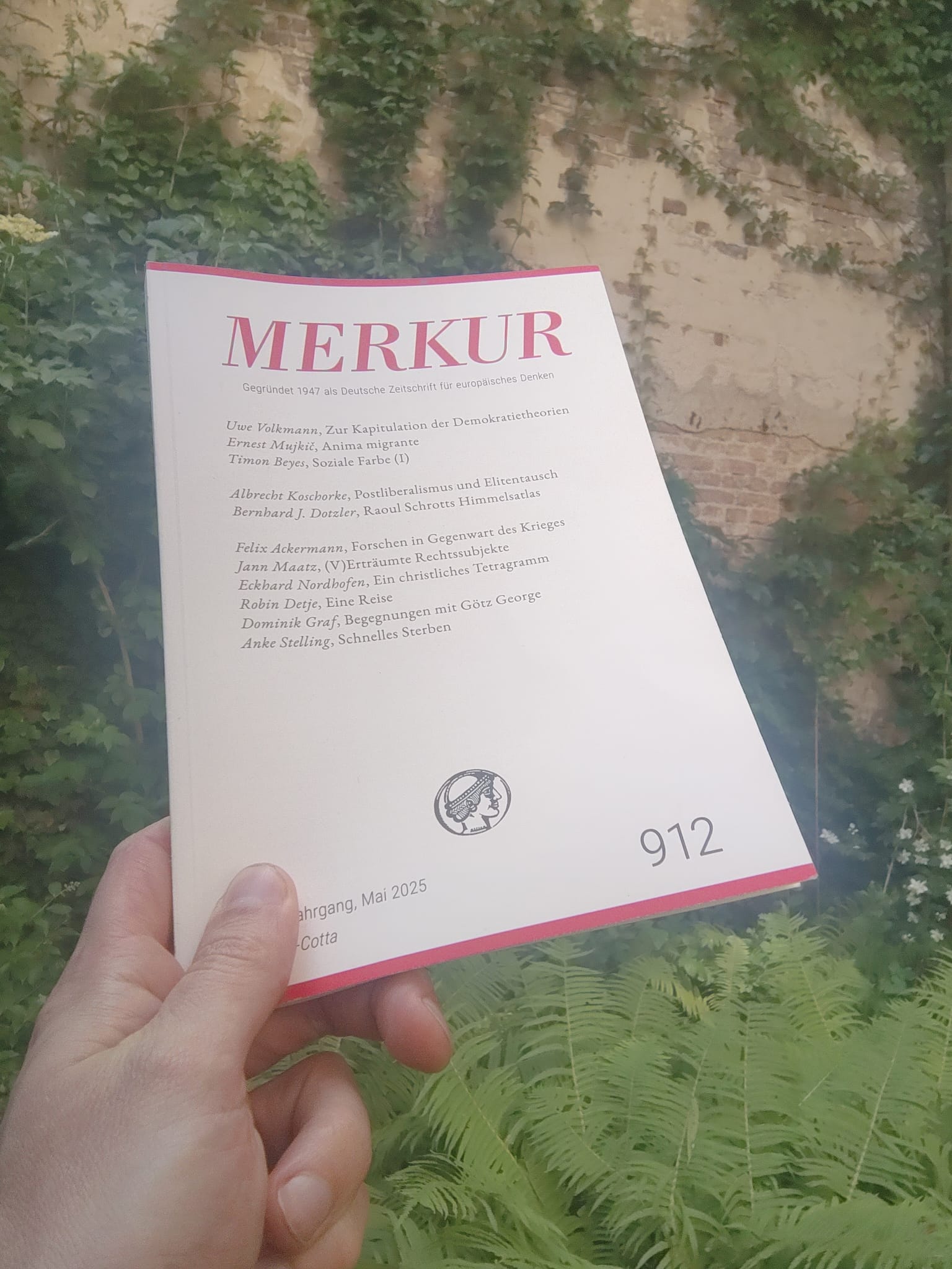 Crisis, one way or another. No wonder we might feel in crisis ourselves. To untangle a few knots, I recommend Uwe Volkmann’s article “Demokratischer Minimalismus” (Merkur, no. 912, May 2025). Volkmann explains why terms such as resilience are thriving – and why mere defense is not enough in the fight for democracy.