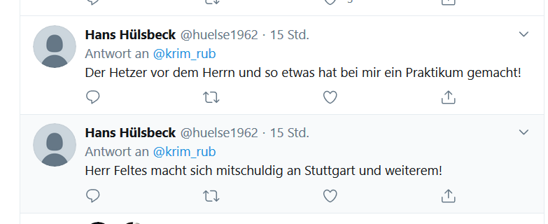 Polizeibeamt*innen sind unzweifelhaft Grundrechtsträger – wie jede andere Bürger und jede andere Bürgerin in unserem Land auch. Sie haben die gleichen Rechte, und auch einige mehr, Stichwort Gewaltmonopol. Wer mehr Rechte als andere hat, muss damit aber sorgsam umgehen und muss sich auch gefallen lassen, dass seine Handlungen genau beobachtet und auch kritisiert werden, wenn Grenzen überschritten werden. Kritik an der Polizei grenzt aber, diesen Eindruck kann man manchmal haben, an Majestätsbeleidigung. Wer z.B. anmerkt, dass Pfefferspray gefährlich ist und zu oft von der Polizei unangemessen eingesetzt wird oder wer sich daran stört, wie mit psychisch kranken Menschen umgegangen wird, der wird schon mal als „Hetzer“((So zuletzt der Autor durch ein Mitglied des Bundes deutscher Kriminalbeamter auf Twitter, s. Screenshot.)) bezeichnet, der sich „mitschuldig an Stuttgart“ mache.