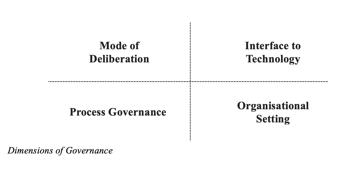 The Mode of Deliberation includes the question of who issues the rules for LLMs in the first place. Is it just the developers of the services, such as the set of 21 rules in the case of Google DeepMind’s not yet released chatbot “Sparrow”, are there state-set rules that have gone through a parliamentary process or do rules originate from multi-stakeholder arrangements? The Interface to Technology dimension describes the mechanisms by which systems learn to follow the previously defined rules. Training of the rules can be done by traditional human reinforced feedback or even by another AI systems that trains the respective LLM. An example for the latter constellation is the multi-stage learning process that is known as “Constitutional AI”. It involves LLMs being trained by AI systems based on fundamental values defined by the company – the “Constitution”. Process Governance addresses the question of how the processes of rule creation and implementation are structured: Does this happen solely along the lines of entrepreneurial autonomy, are there any industry standards or even government rules? Finally, rulemaking can be analyzed by looking at the Organisational Setting. This includes the structure of actors involved in rulemaking and implementation, such as an oversight board, a small agency, a regulator, or even a worldwide council.